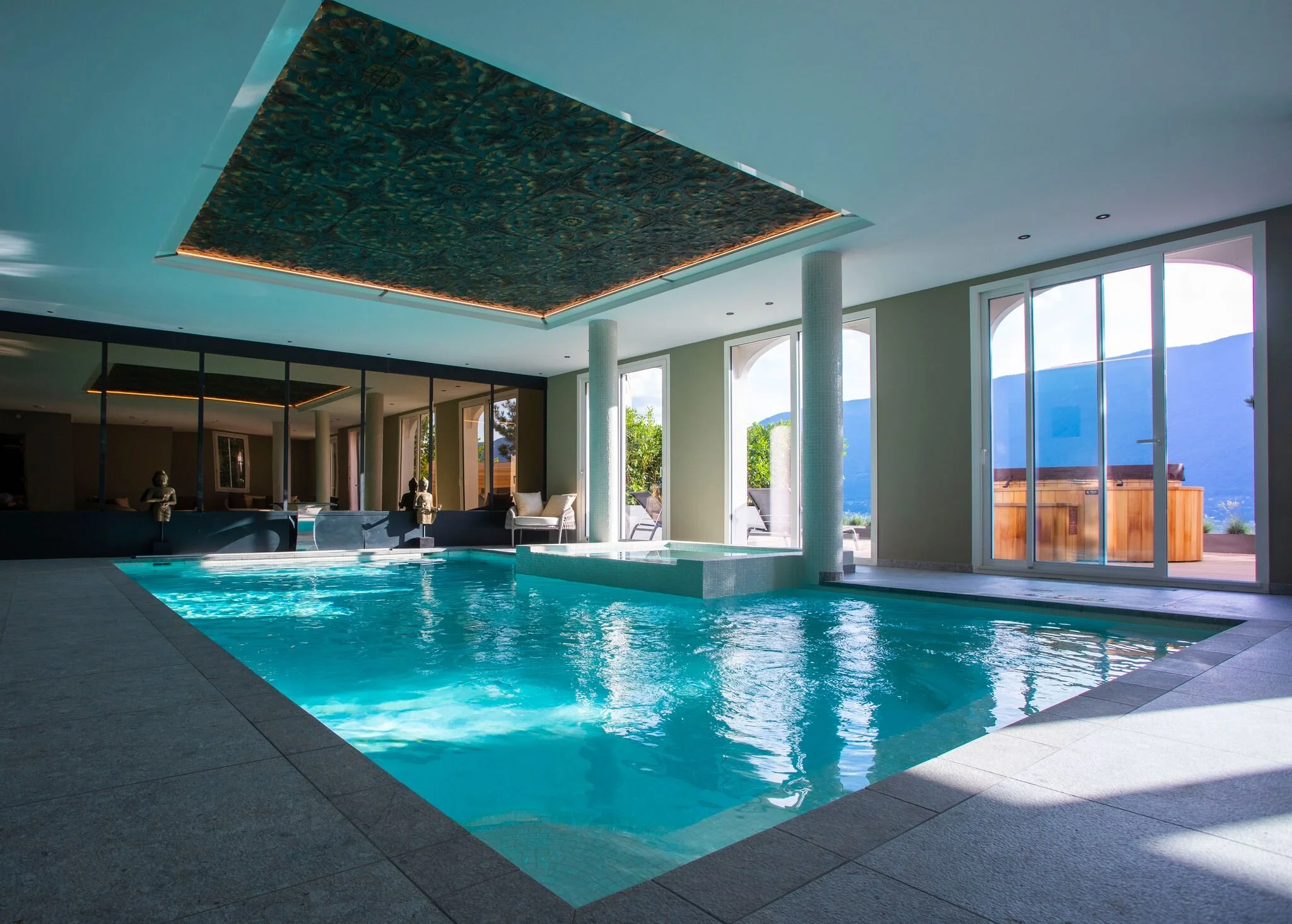 Nestled in this exceptional house, the Spa of the L’Incomparable Hotel is an intimate place, where relaxation is absolute, on the shores of Lac du Bourget, in the heart of the Riviera of the Alps. Wellness area offers 2 swimming pools (1 indoor and 1 outdoor heated), a fitness room, Hammam, outdoor sauna and Jacuzzi, relaxing room with salt wall, 4 treatment rooms, fitness room and tennis court.