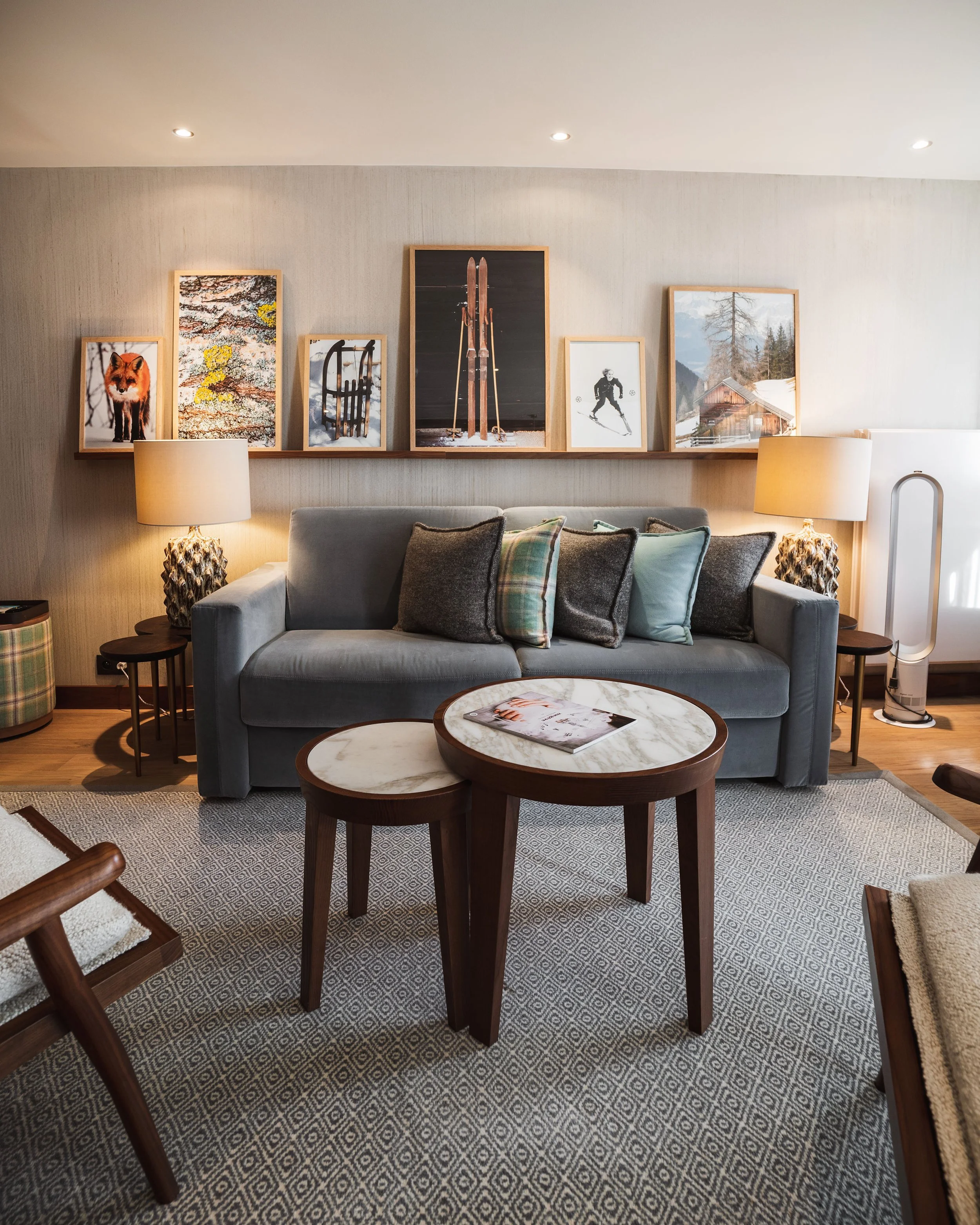 Nestled in the Haute-Savoie region of the French Alps, in the shadow of Mont Blanc, Megève has been attracting the skiing elite for almost a century. On the main pedestrian street, meters away from the church square and the ski lift, the iconic hotel Coeur de Megève has been given a second lease of life by famed interior designer Sybille de Margerie. Reimagining the original ski chalet, de Margerie designed a contemporary mountain lodge made of brushed walnut panelling, soft furnishings and vibrant colours.